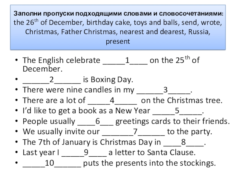 The English celebrate _____1____ on the 25th of December.