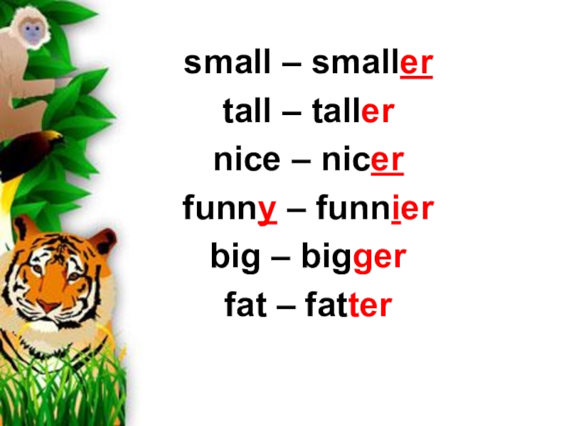 small – smallertall – tallernice – nicerfunny – funnierbig – biggerfat – fatter