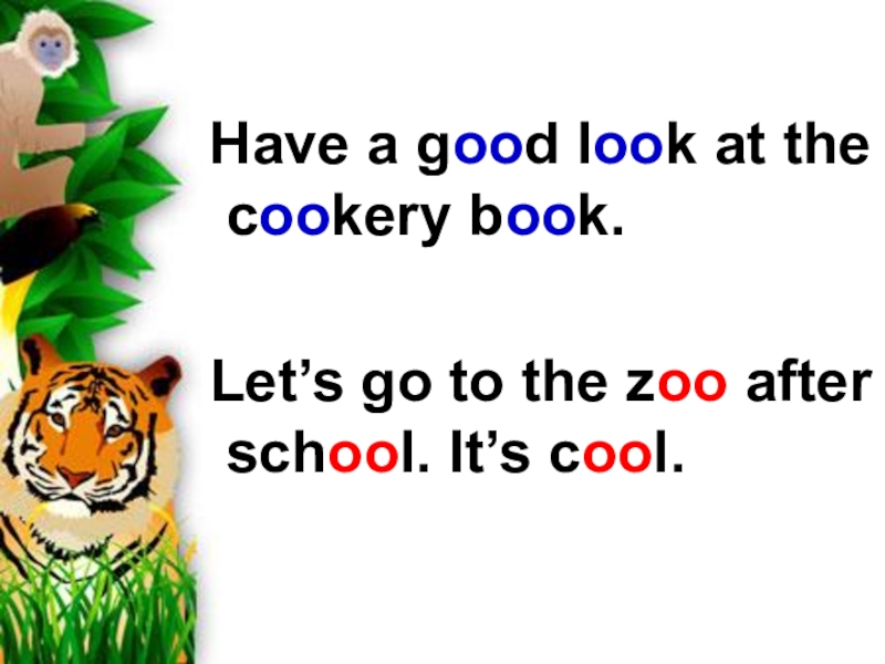 Have a good look at the cookery book. Let’s go to the zoo after school. It’s