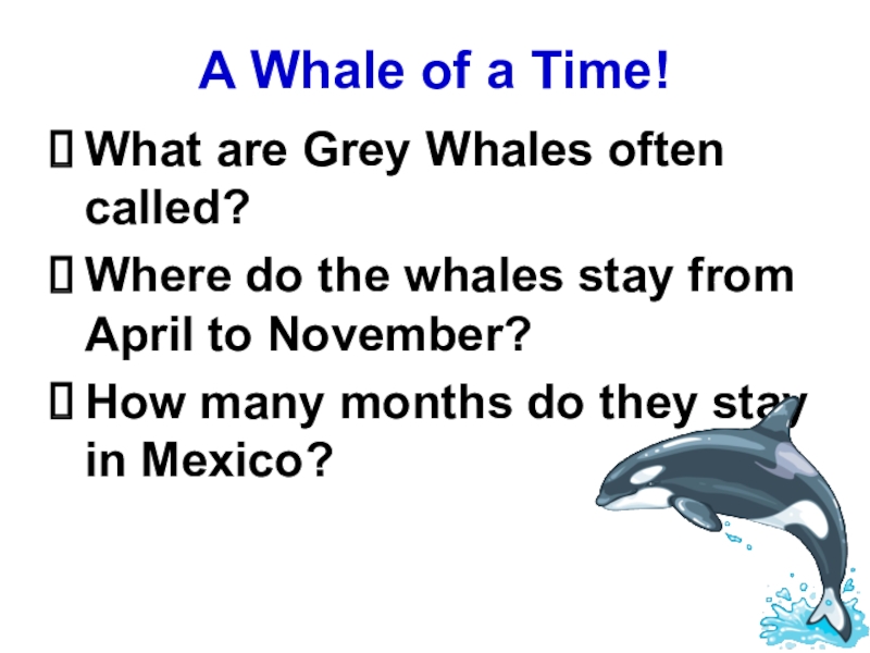 A Whale of a Time!What are Grey Whales often called?Where do the whales stay from April to