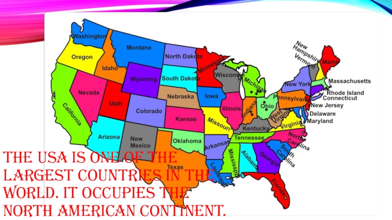The USA is one of the largest countries in the world. It occupies the North American continent.