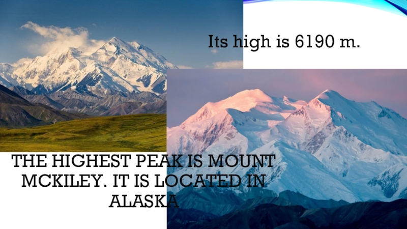 Слайд 9The highest peak is mount mckiley. It is located in alaska