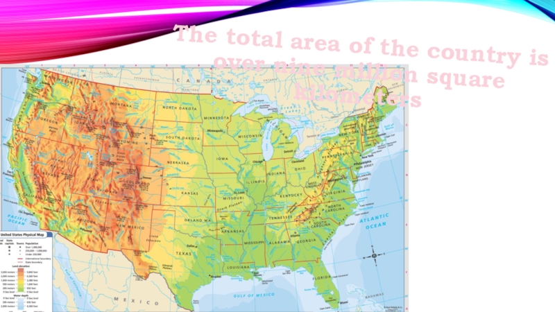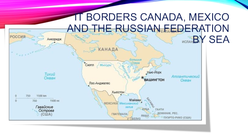 Слайд 5It borders Canada, mexico and the Russian federation by sea