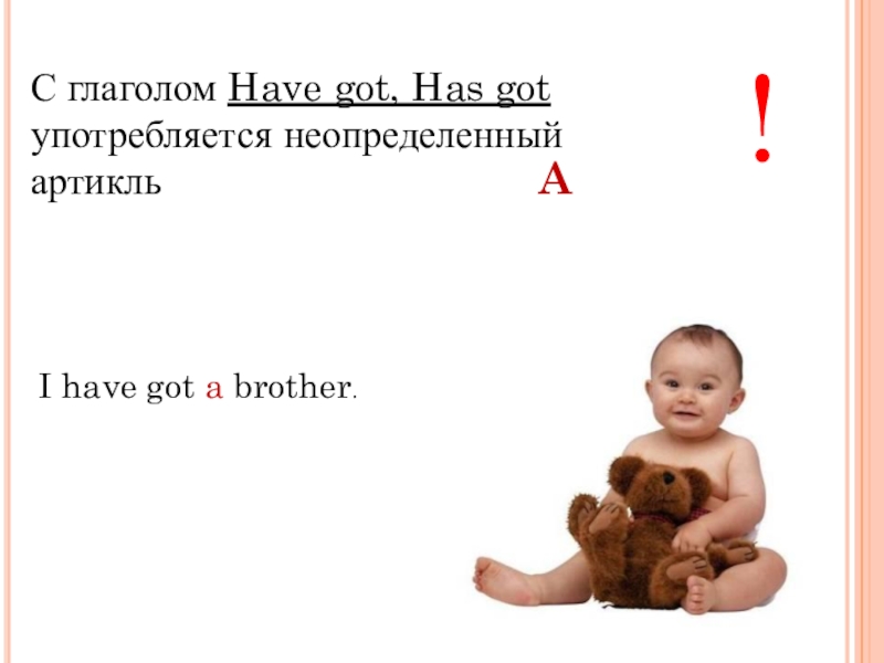 С глаголом Have got, Has got употребляется неопределенный артикль !I have got a brother.A