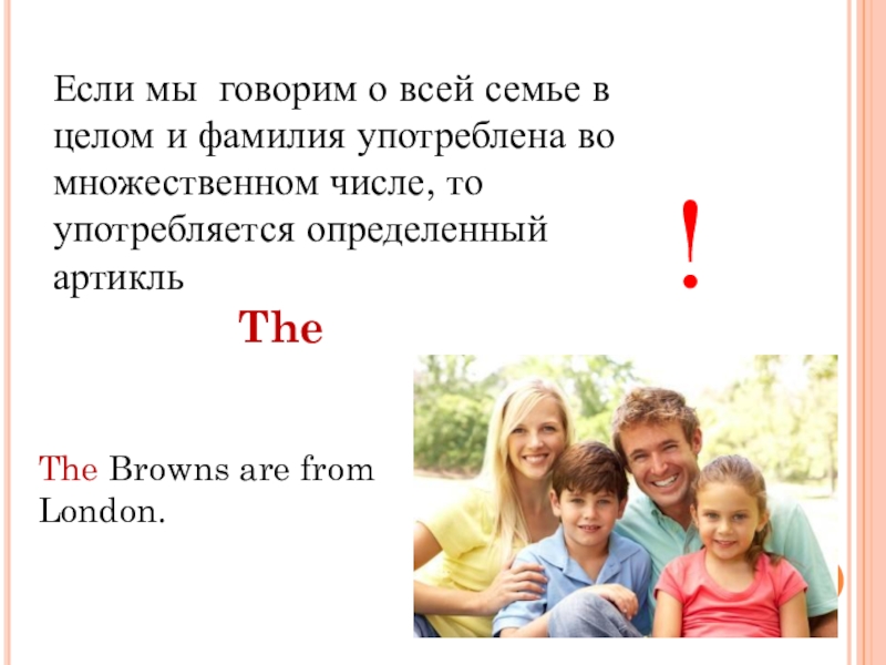 Слайд 7Если мы говорим о всей семье в целом и фамилия употреблена