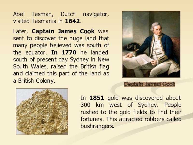 In 1851 gold was discovered about 300 km west of Sydney. People rushed to the gold fields to find their fortunes. This attracted robbers called bushrangers.