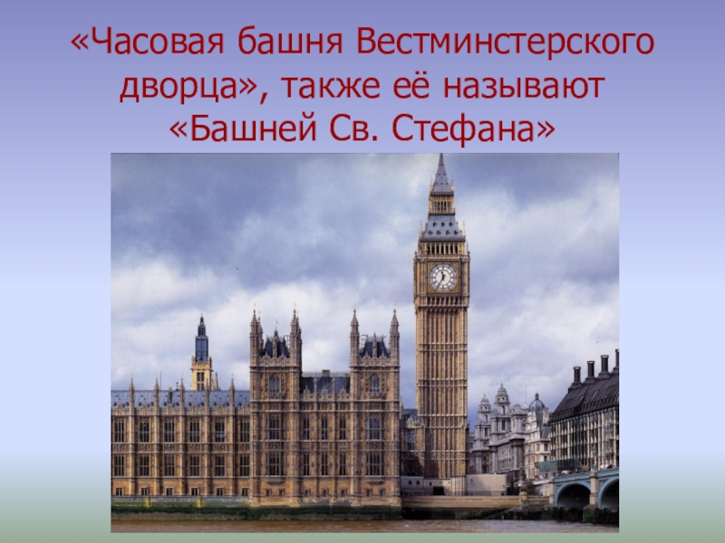 Слайд 7«Часовая башня Вестминстерского дворца», также её называют «Башней Св. Стефана»