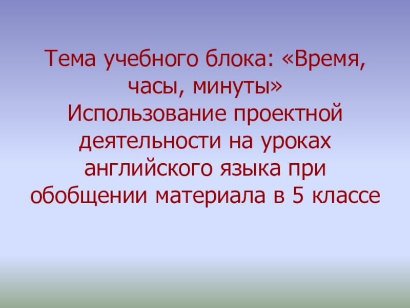 Тема учебного блока: «Время, часы, минуты» Использование проектной деятельности на уроках английского языка при обобщении материала в 5 классе