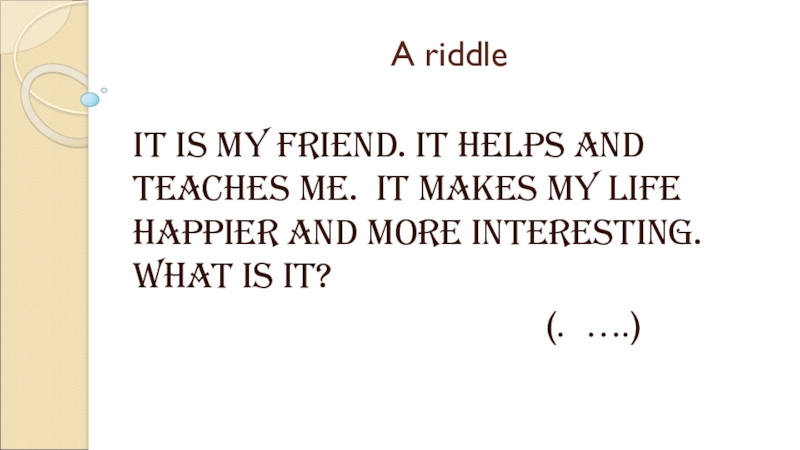 Это сайт презентаций, где можно хранить и обмениваться своими презентациями, докладами, проектами, шаблонами в формате PowerPoint с другими пользователями. Мы помогаем школьникам, студентам, учителям, преподавателям хранить и обмениваться учебными материалами.