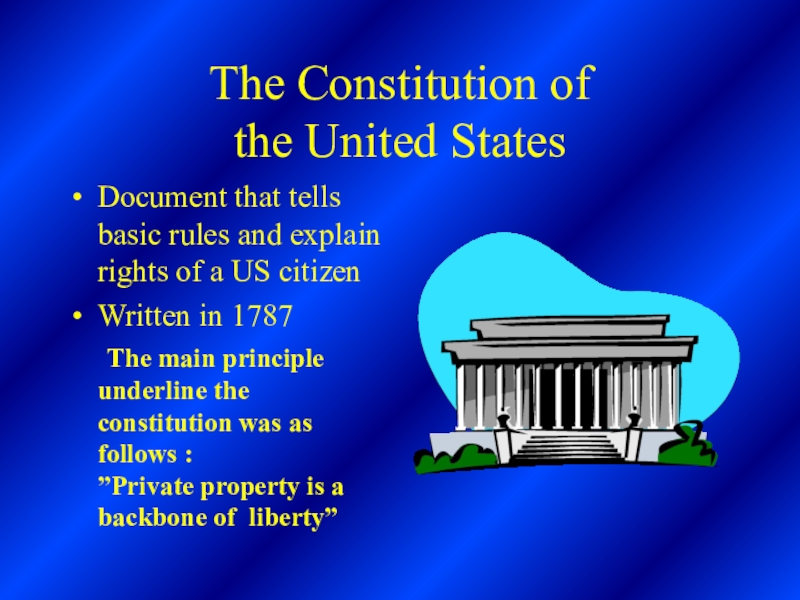 The main principle underline the constitution was as follows : ”Private property is a backbone of liberty”