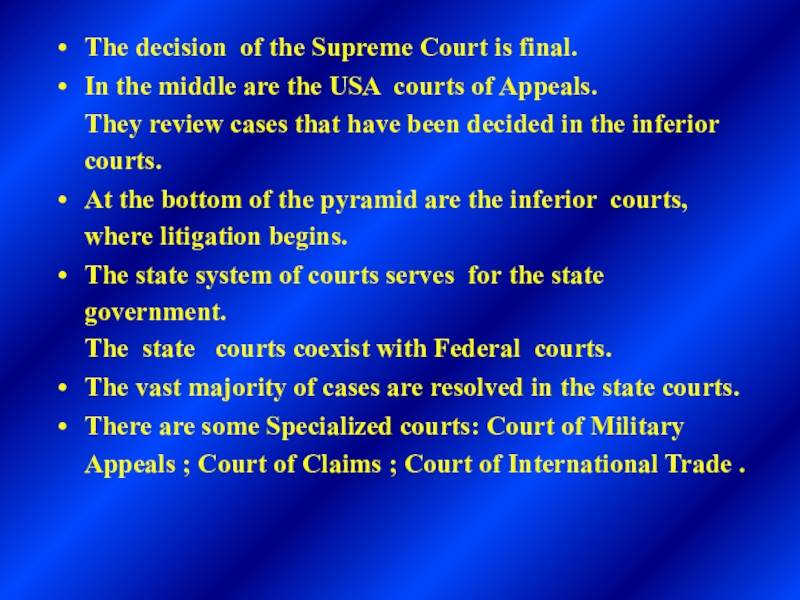 At the bottom of the pyramid are the inferior courts , where litigation begins.