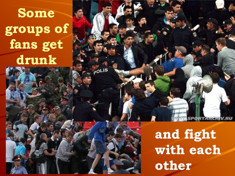 Слайд 18Some groups of fans get drunk