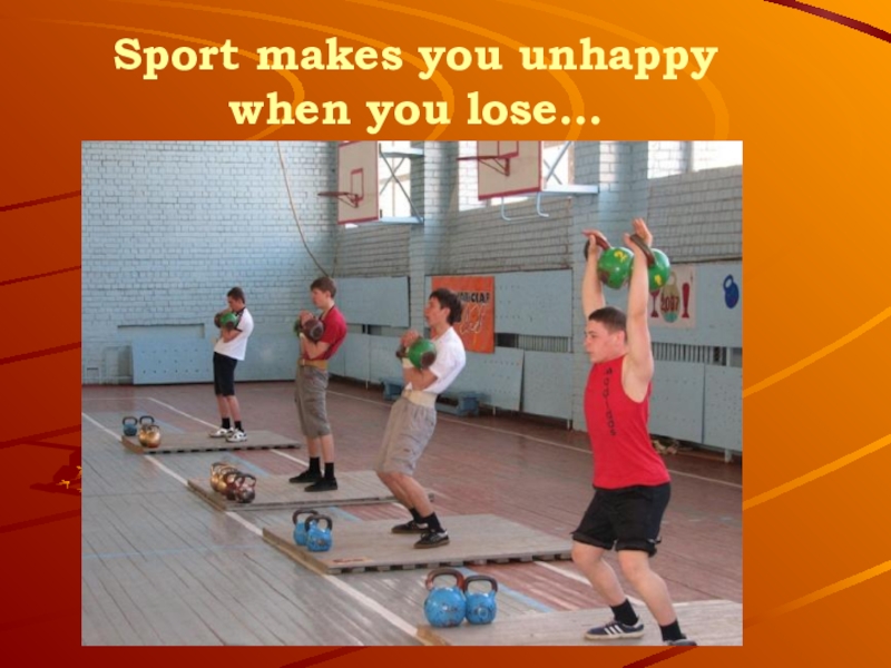 Слайд 19Sport makes you unhappy when you lose…