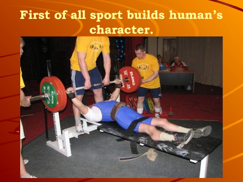 Слайд 3First of all sport builds human’s character.