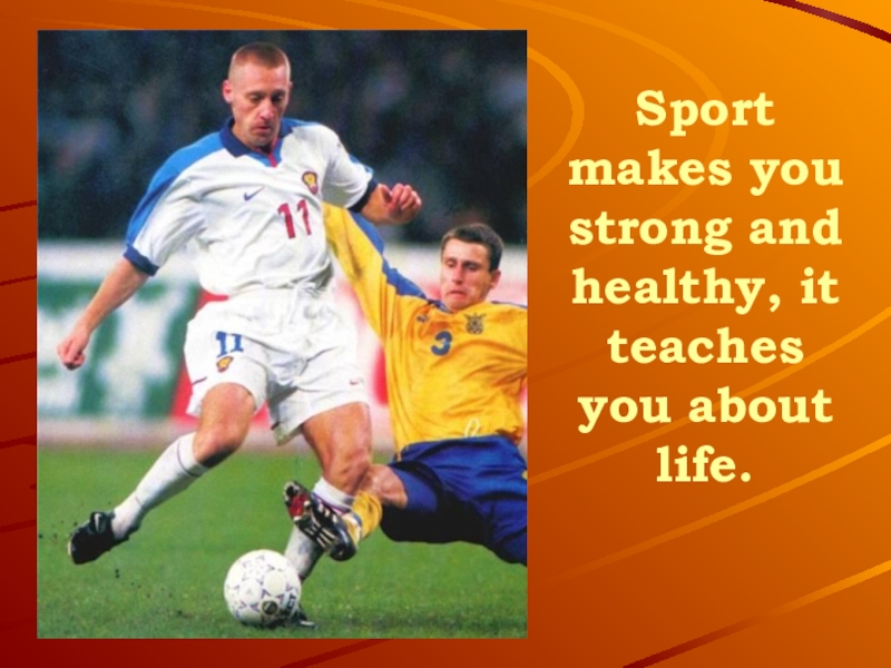Слайд 4Sport makes you strong and healthy, it teaches you about life.