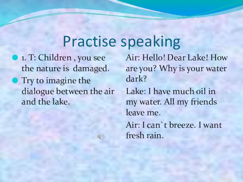 Air: Hello! Dear Lake! How are you? Why is your water dark?