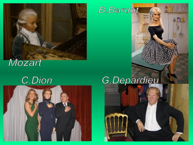 Mozart B.Bardot C.Dion G.Depardieu