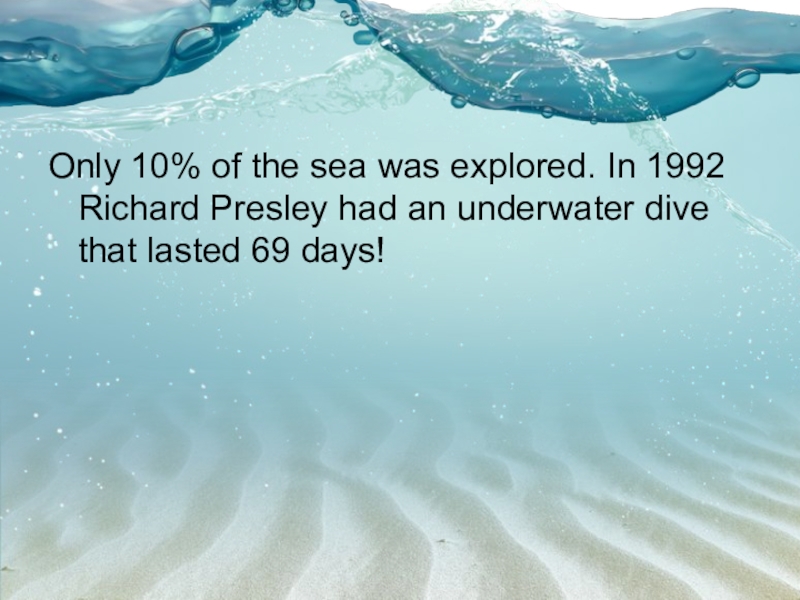 Only 10% of the sea was explored. In 1992 Richard Presley had an underwater dive that lasted
