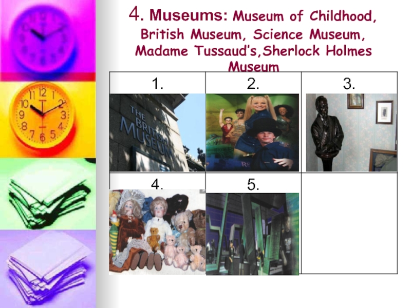 Слайд 114. Museums: Museum of Childhood, British Museum, Science Museum, Madame Tussaud’s,Sherlock