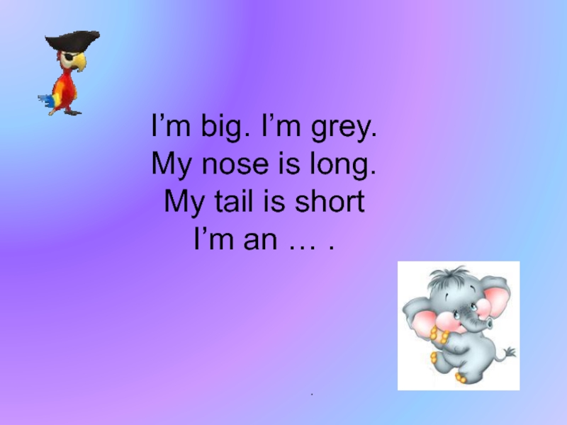 . I’m big. I’m grey. My nose is long. My tail is short I’m an … .