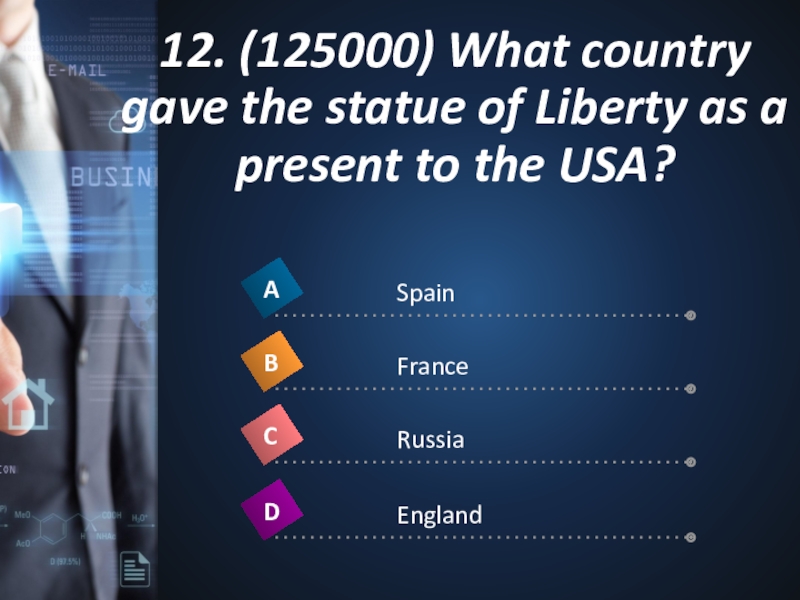 Слайд 2712. (125000) What country gave the statue of Liberty as a
