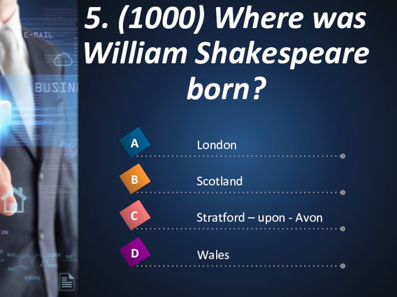 5. (1000) Where was William Shakespeare born?1
