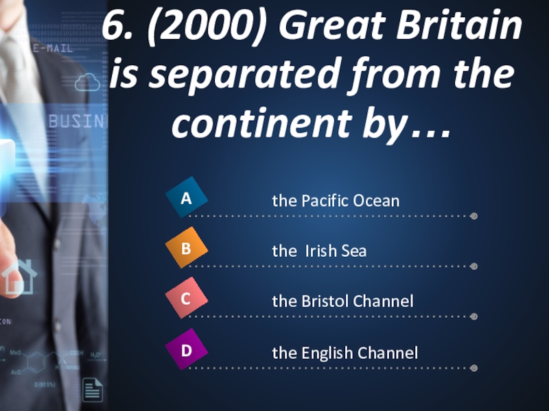 6. (2000) Great Britain is separated from the continent by…1
