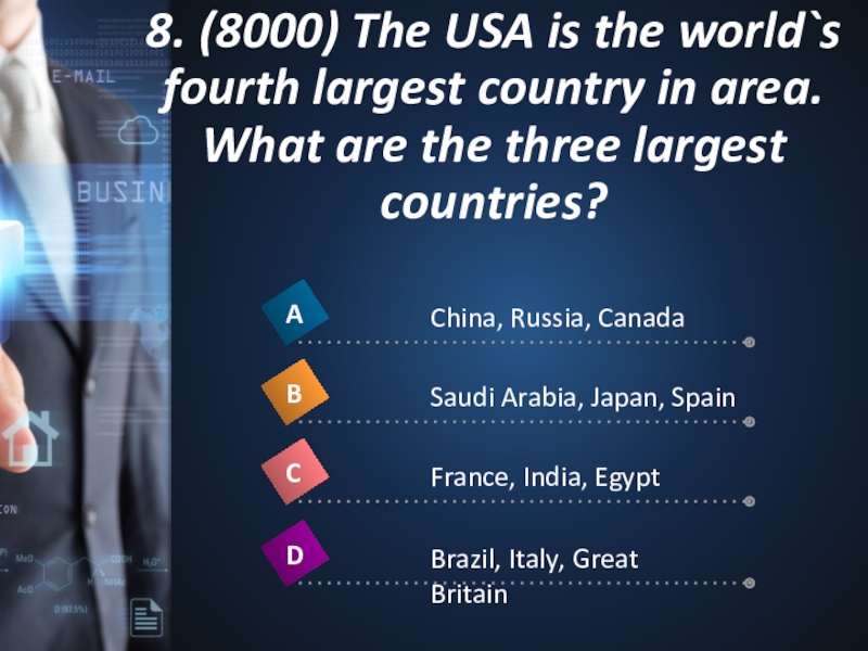 Слайд 198. (8000) The USA is the world`s fourth largest country in