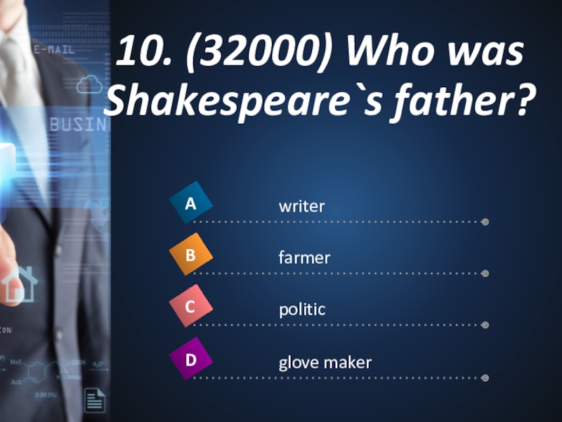 Слайд 2310. (32000) Who was Shakespeare`s father?