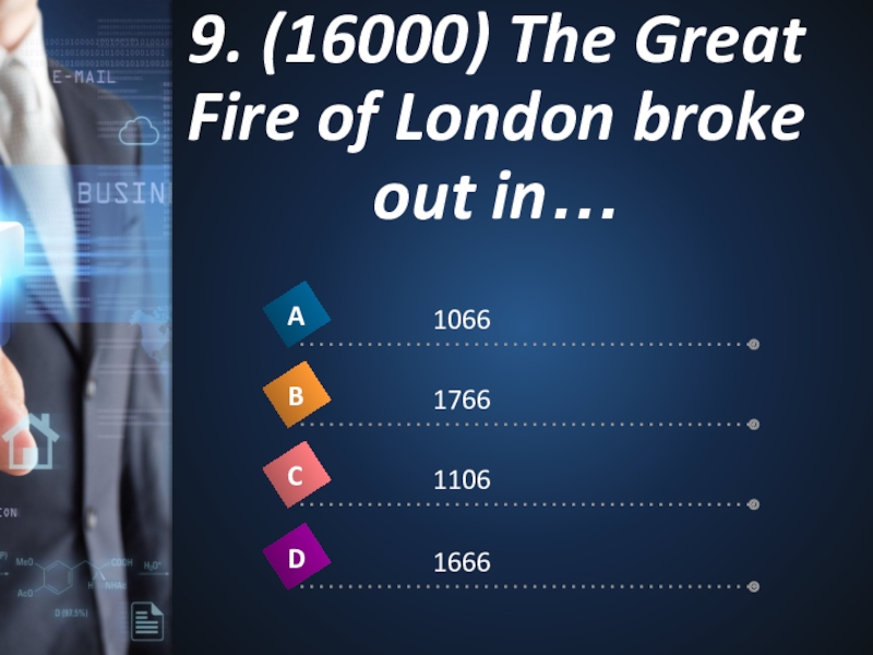 Слайд 219. (16000) The Great Fire of London broke out in…