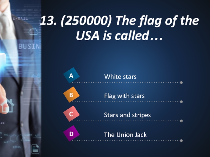 Слайд 2913. (250000) The flag of the USA is called…