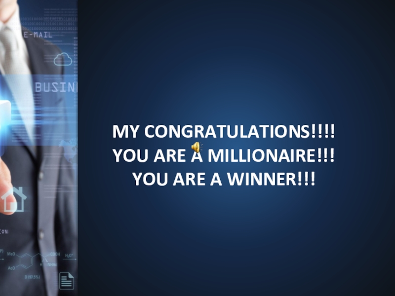 MY CONGRATULATIONS!!!! YOU ARE A MILLIONAIRE!!!YOU ARE A WINNER!!!