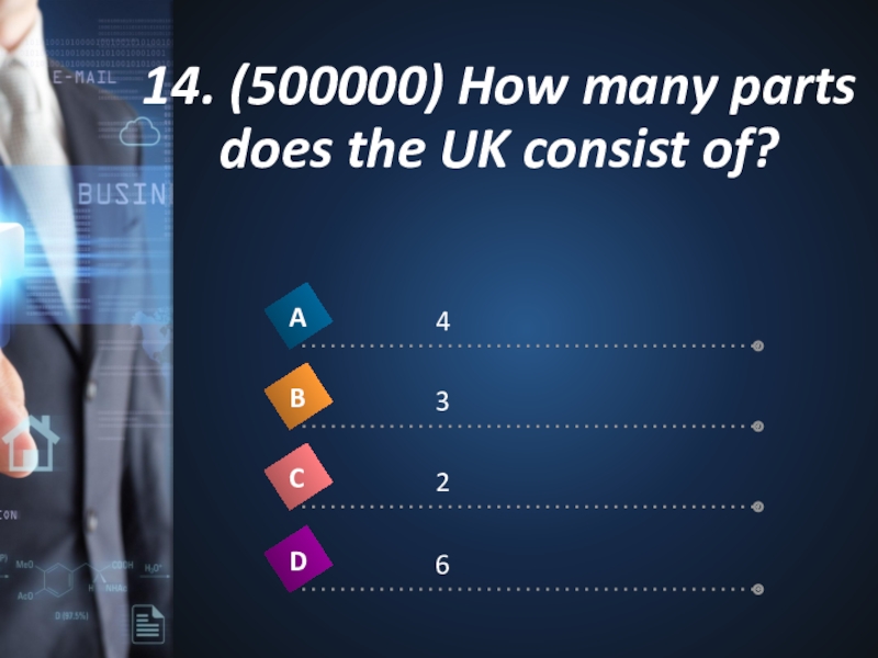 14. (500000) How many parts does the UK consist of?1