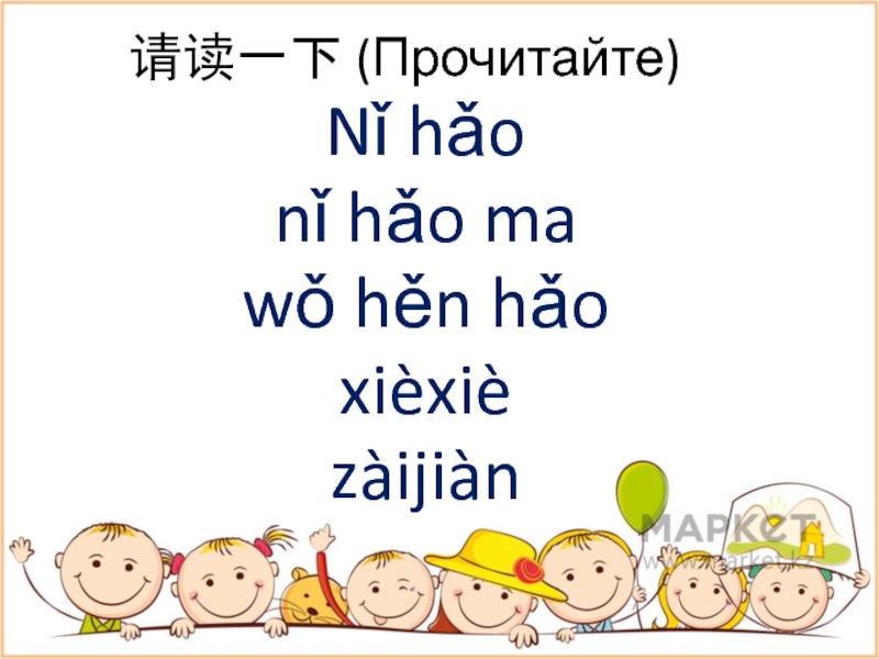 请读一下 (Прочитайте)Nǐ hǎonǐ hǎo mawǒ hěn hǎoxièxièzàijiàn