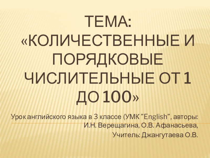 в 3 классе (УМК ”English”, авторы: И.Н. Верещагина, О.В. Афанасьева,