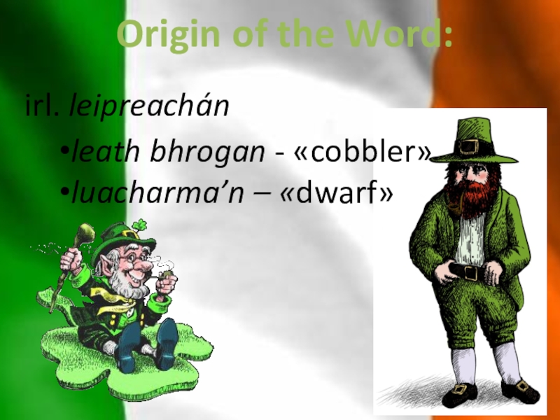 irl. leipreachánOrigin of the Word:leath bhrogan - «cobbler»luacharma’n – «dwarf»