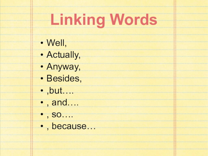 Linking WordsWell,Actually,Anyway,Besides,,but…., and…., so…., because…