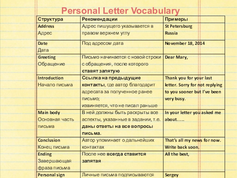 Презентация, доклад к уроку Личное письмо (англ.яз)