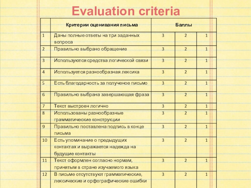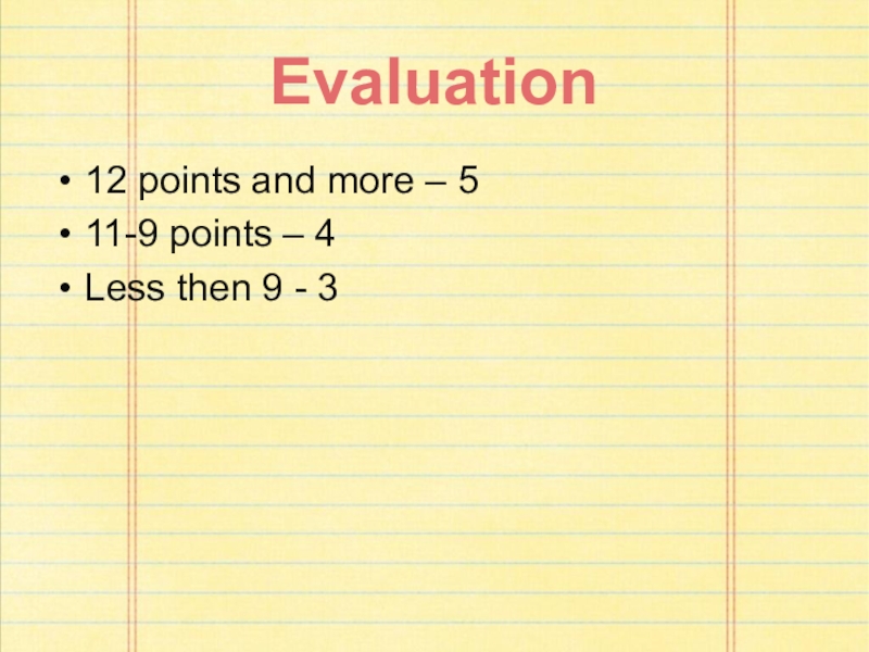Evaluation12 points and more – 511-9 points – 4Less then 9 - 3
