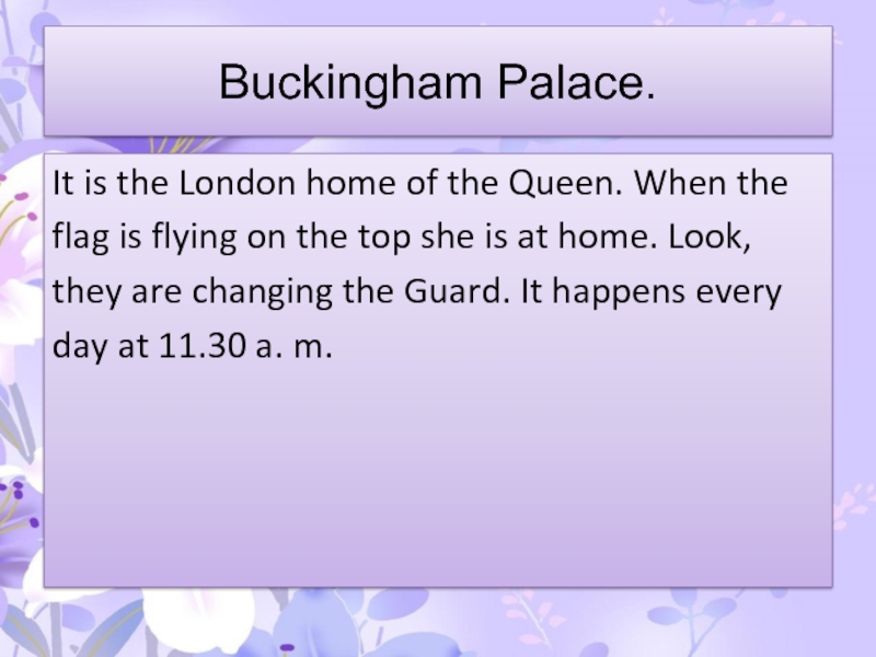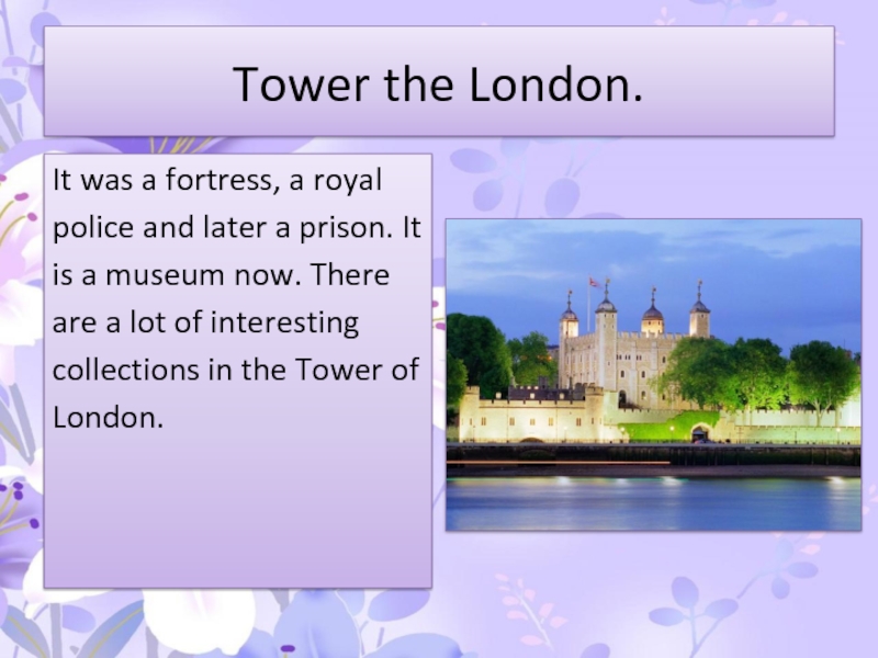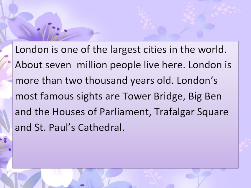 London is one of the largest cities in the world. About seven million people live here. London is more than two thousand years old. London’s most famous sights are Tower Bridge, Big Ben and the Houses