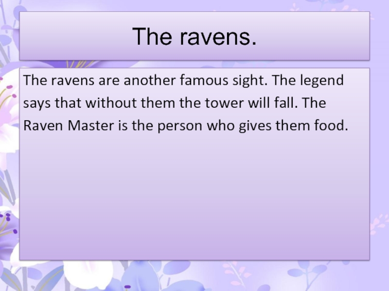 The ravens.The ravens are another famous sight. The legend says that without them the tower will fall.