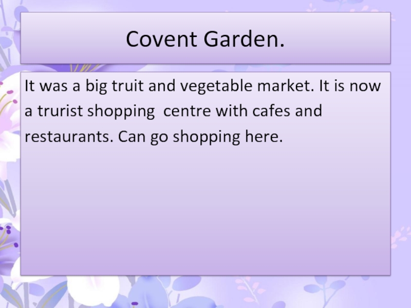 Covent Garden. It was a big truit and vegetable market. It is now a trurist shopping
