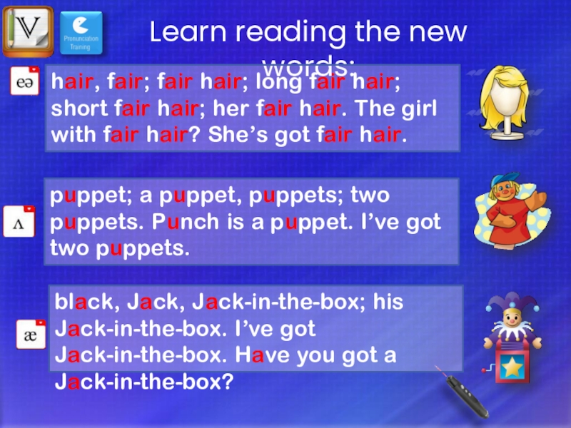 puppet; a puppet, puppets; two puppets. Punch is a puppet. I’ve got two puppets.