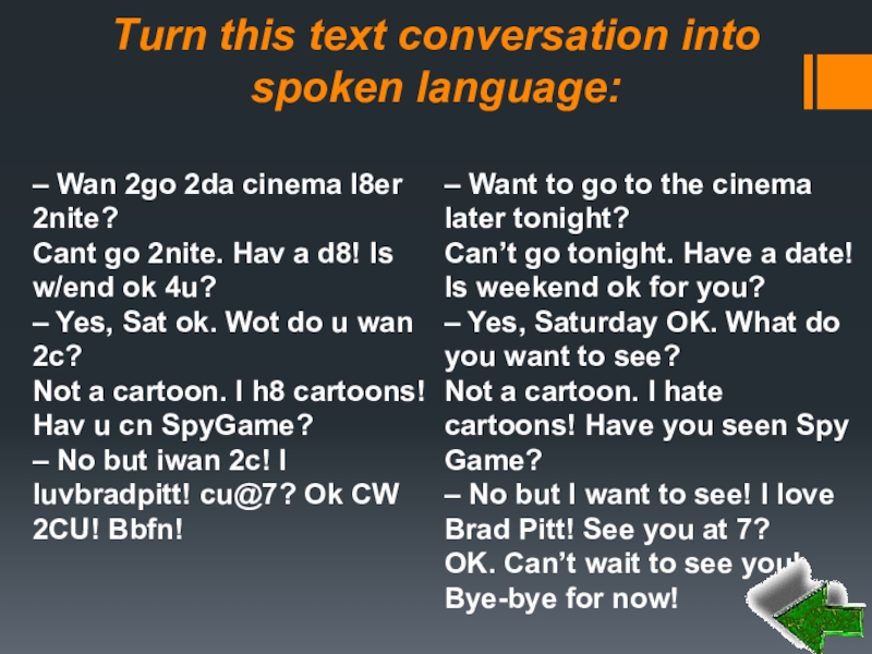 – Want to go to the cinema later tonight?