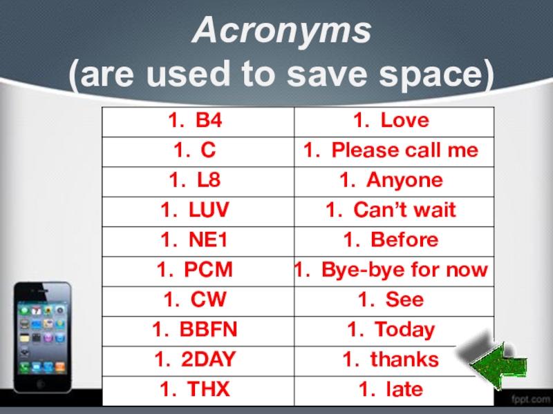 Это сайт презентаций, где можно хранить и обмениваться своими презентациями, докладами, проектами, шаблонами в формате PowerPoint с другими пользователями. Мы помогаем школьникам, студентам, учителям, преподавателям хранить и обмениваться учебными материалами.