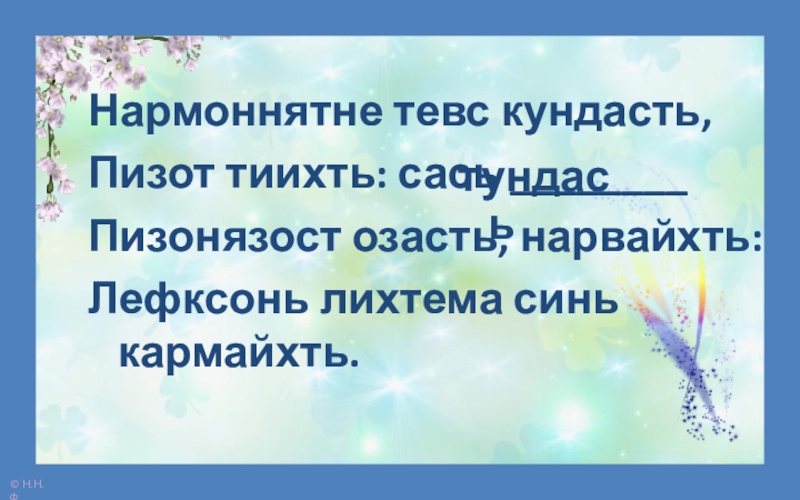Нармоннятне тевс кундасть,Пизот тиихть: сась ________Пизонязост озасть, нарвайхть:Лефксонь лихтема синь кармайхть.тундась