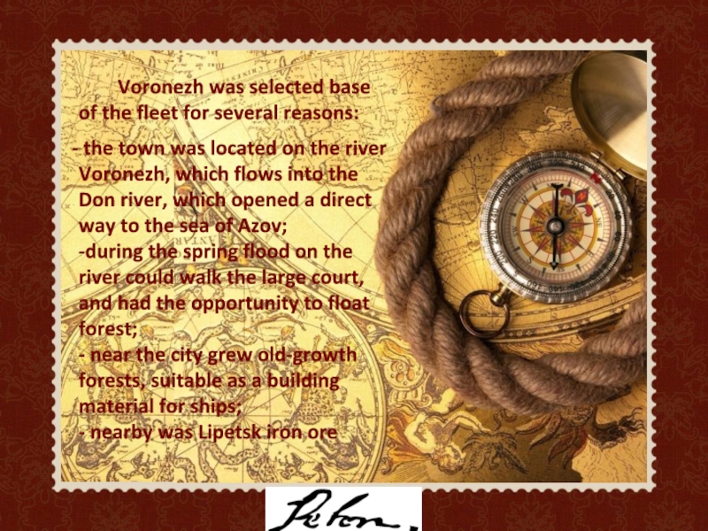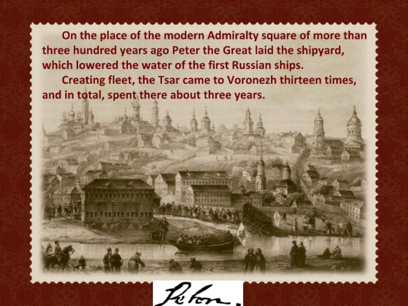 Creating fleet, the Tsar came to Voronezh thirteen times, and in total, spent there about three years.
