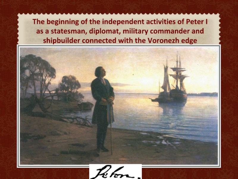The beginning of the independent activities of Peter I as a statesman, diplomat, military commander and shipbuilder connected with the Voronezh edge