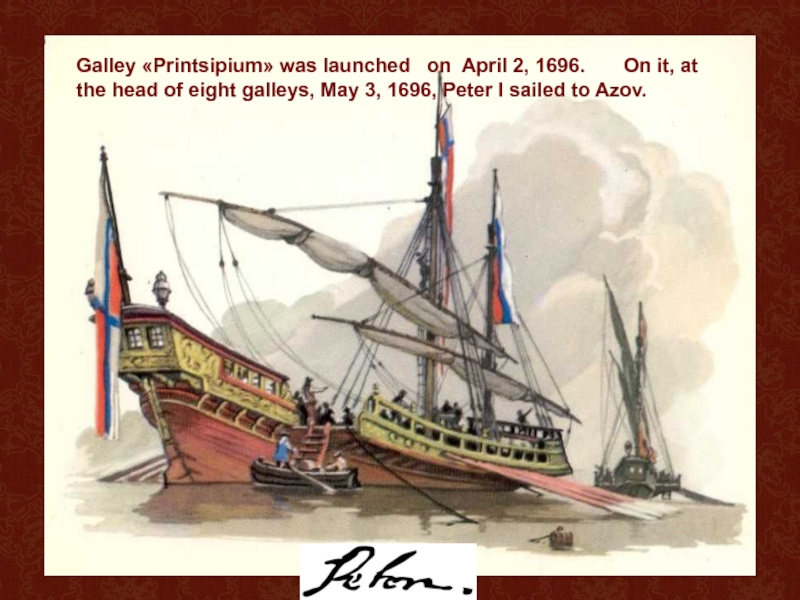 Слайд 10Galley «Printsipium» was launched on April 2, 1696.