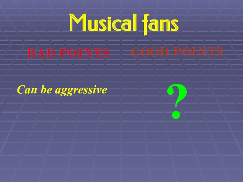 Musical fansBAD POINTSCan be aggressiveGOOD POINTS?